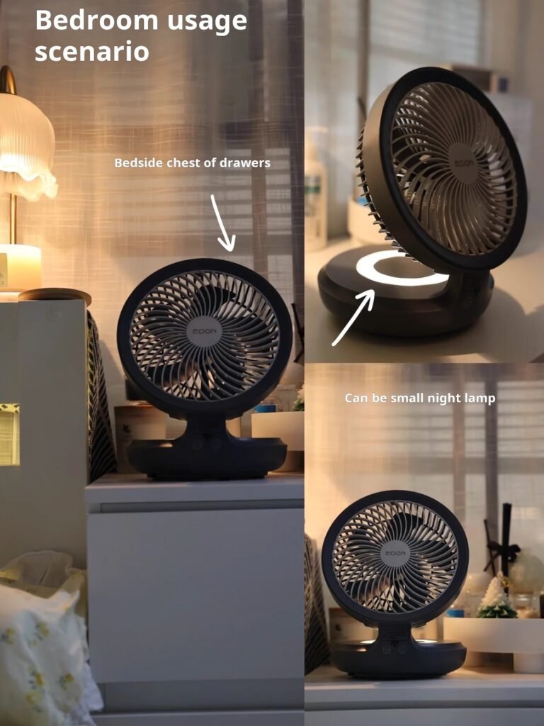 I use this fan in my office. It’s so quiet and effective, plus it folds up nicely for storage.